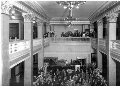 HistoryArchitect John E. Wicks designed the plans for the Astoria National Bank building in 1923. Niemi and Company completed the construction of this Classic American Renaissance building in 1924 at a cost of $100,000.00. The bank opened for business on February 25th, 1924 and went into receivership on February 25, 1928. The building remained vacant for two years until 1930 when the newly-chartered Bank of Astoria occupied the building. On July 13, 1937 the United States Bank of Portland bought the Bank of Astoria and occupied the building until 1973 after which the bank building was used to store costumes by the Astor Street Opry Company. Over the past 30 years the building changed hands a number of times and was ultimately left neglected and vacant. In 2003 the Columbia River Day Spa leased and converted the first floor of the building into a full service day spa. At that time a floor was installed between the first and second level of the once grand 30' tall open space creating a 4500 square foot area on the top floor which still retains the impressive top half of the beautiful plaster columns and capitals. In 2005 Blue Mars purchased the building and hired Rickenback Construction to perform a year long renovation and restoration on the building's second floor and exterior creating a grand suite offered today as The Banker's Suite. In 2009 the day spa moved out and Blue Mars hired Paul Caruana of Caruana Inc. to renovate the first floor space into a grand ballroom offered today as The Banker's Ballroom and Boutique. |